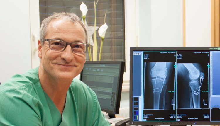 Welche konservativen und operativen Behandlungsmöglichkeiten es gibt, erläutert der Sportorthopäde Rainald Kiene bei einer Veranstaltung des TSV 2000 Rothenburg. Anhand von Beispielen aus dem Handball-, Fußball- und Motocross-Sport sowie nach Freizeitunfällen wie Stürzen beim Bergwandern oder beim Trampolinspringen demonstriert der Leiter der Unfallchirurgie an der Klink Rothenburg einfache Kniegelenksverletzungen wie Bänderzerrungen, aber auch schwerste Knie-Komplextraumen wie z. B. die Kniegelenksluxation (Ausrenkung).