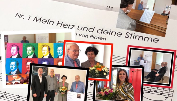 In kleinem, aber feinem Rahmen übergab Friedrich Hilterhaus heute (19. September 2019) im neuen Büro der Stiftung in Schalkhausen einen Scheck in Höhe von 2.000 € an den Germanisten Prof. Dr. Gunnar Och und Musiker Eric Fergusson. Beide werden am 21. November zusammen mit Paul Sturm (Klavier) in der Ansbacher Karlshalle August Graf von Platen ‚vertonen‘. Zur Einstimmung spielte Gerti Hilterhaus auf dem Flügel einen Walzer von Brahms.