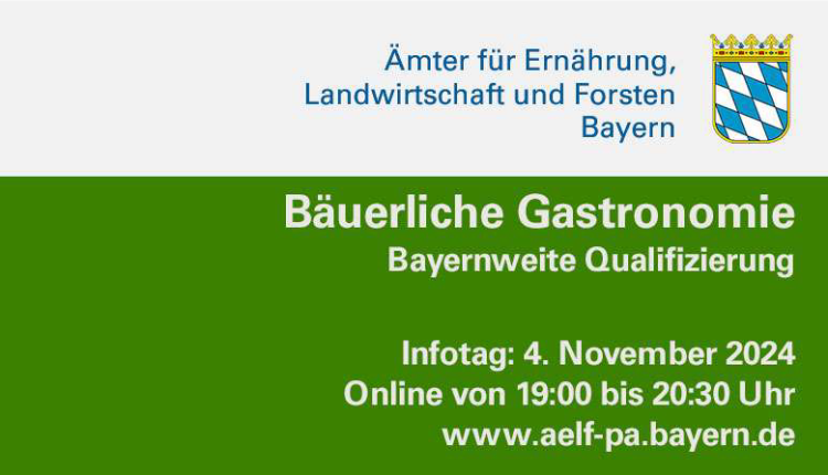 Ansbach, 24. Oktober 2024 – Am 04.11.2024 informiert eine kostenlose, bayernweite Online Infoveranstaltung über das Seminar für Einsteiger in die Bauernhofgastronomie. Veranstalter sind verschiedene Ämter für Ernährung, Landwirtschaft und Forsten (AELF) in Franken und Niederbayern.
