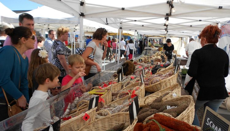 Zehn Händler aus verschiedenen Regionen Frankreichs verwöhnen mit ihren frischen Produkten die Gaumen der Ansbacher. Im Angebot sind Käse und Wurstwaren, Oliven, Pasteten und Terrinen, Wein, Nougat, Flammkuchen und Crepes sowie Seifen und Lavendel.