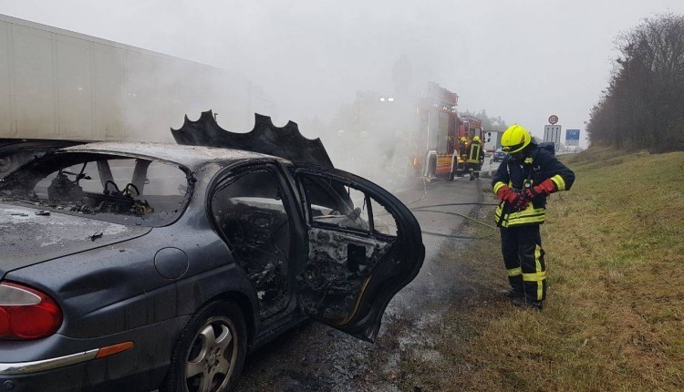 A6 / Aurach: +++ Pkw ging in Flammen auf +++