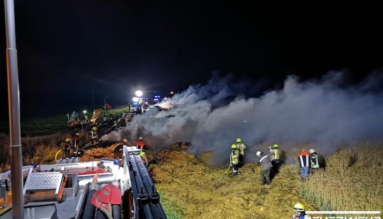 Adelshofen: +++ Strohballen gerieten in Brand – Großaufgebot der Feuerwehren im Einsatz +++