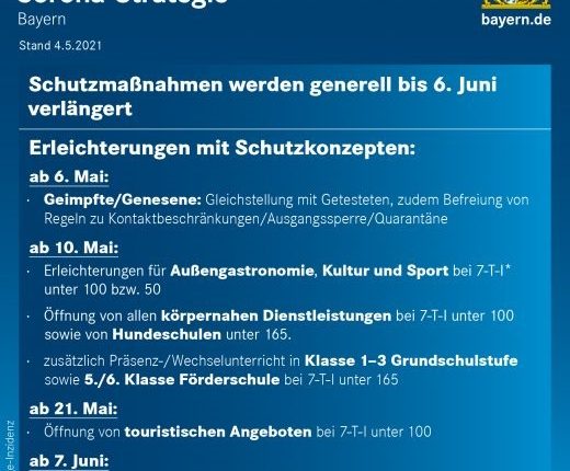 Änderung der 12. Infektionsschutzmaßnahmenverordnung – Änderungen für Geimpfte und Genesene, Öffnung der Außengastronomie und der touristischen Angebote ab einer Inzidenz > 100,