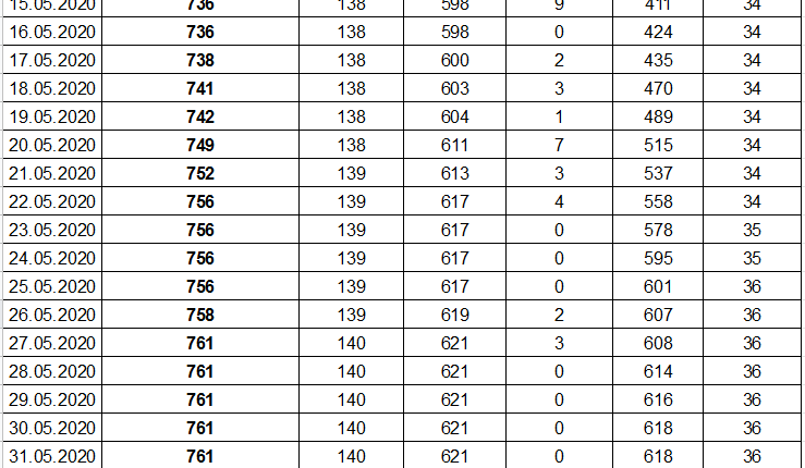 Kreis Ansbach, 05.06.2020 – Es gibt bislang keine weiteren Infektionsfälle und damit insgesamt 761 bestätigte Corona-Fälle in Landkreis Ansbach und Stadt Ansbach.