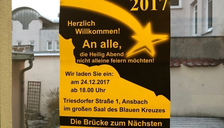 Die Veranstalter, die Mitarbeiter der Evangelischen Allianz Ansbach, laden am 24.12.2017 ab 18.00 Uhr zu guten Essem und anschließendem gemütlichen und besinnlichen Beisammensein in den großen Saal des Blauen Kreuzes, Triesdorfer Straße 1, ein.