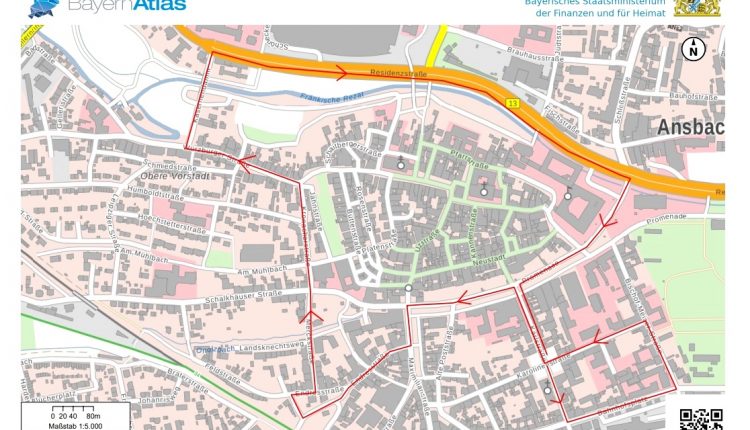 Eine Umleitungsstrecke von Nürnberg bzw. Gunzenhausen/München wurde kommend über die Nürnberger Straße – Schloßstraße – Brauhausstraße – Karpfenstraße zur Würzburger Landstraße eingerichtet.
