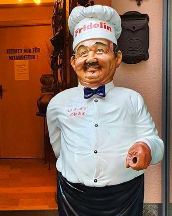 Bereits am Samstag, 29.08. – 22:00 Uhr, bis Sonntag, 30.08.2020 – 09:00 Uhr wurde eine 180 cm große „Kochfigur“ vor dem Bratwurst-Glöckle in der Uzstraße von Unbekannten entwendet. Die Skulptur wiegt ca. 40 kg und stand daher auf Rollen. Der Wert wird mit 1400 Euro angegeben.