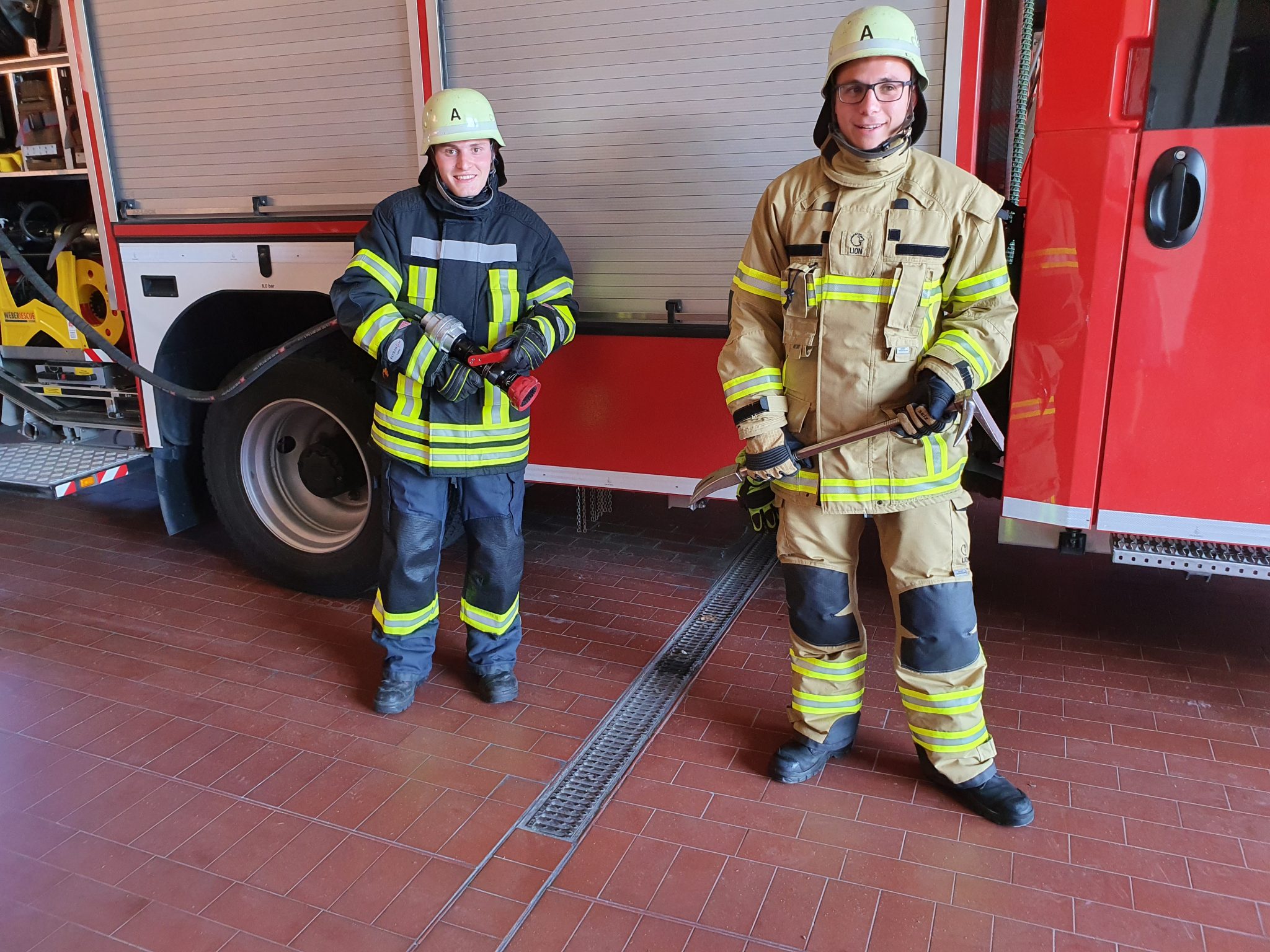 Auf den Bilder in der Galerie sieht man den Vergleich zwischen der neuen sandfarbenen und der ausgedienten dunkelblauen Einsatzkleidung. Die neue Kleidung besteht aus einer Brandschutzhose, einer Brandschutzjacke und aus entsprechenden Handschuhen.