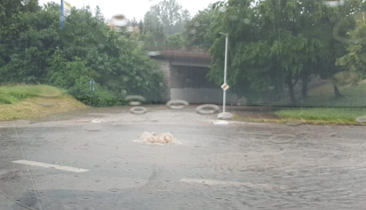 Einige Straßenunterführungen liefen voll Wasser, ebenso wie Keller und tiefergelegene Räume. Die Fußgängerunterführung am Bahnhof stand unter Wasser.