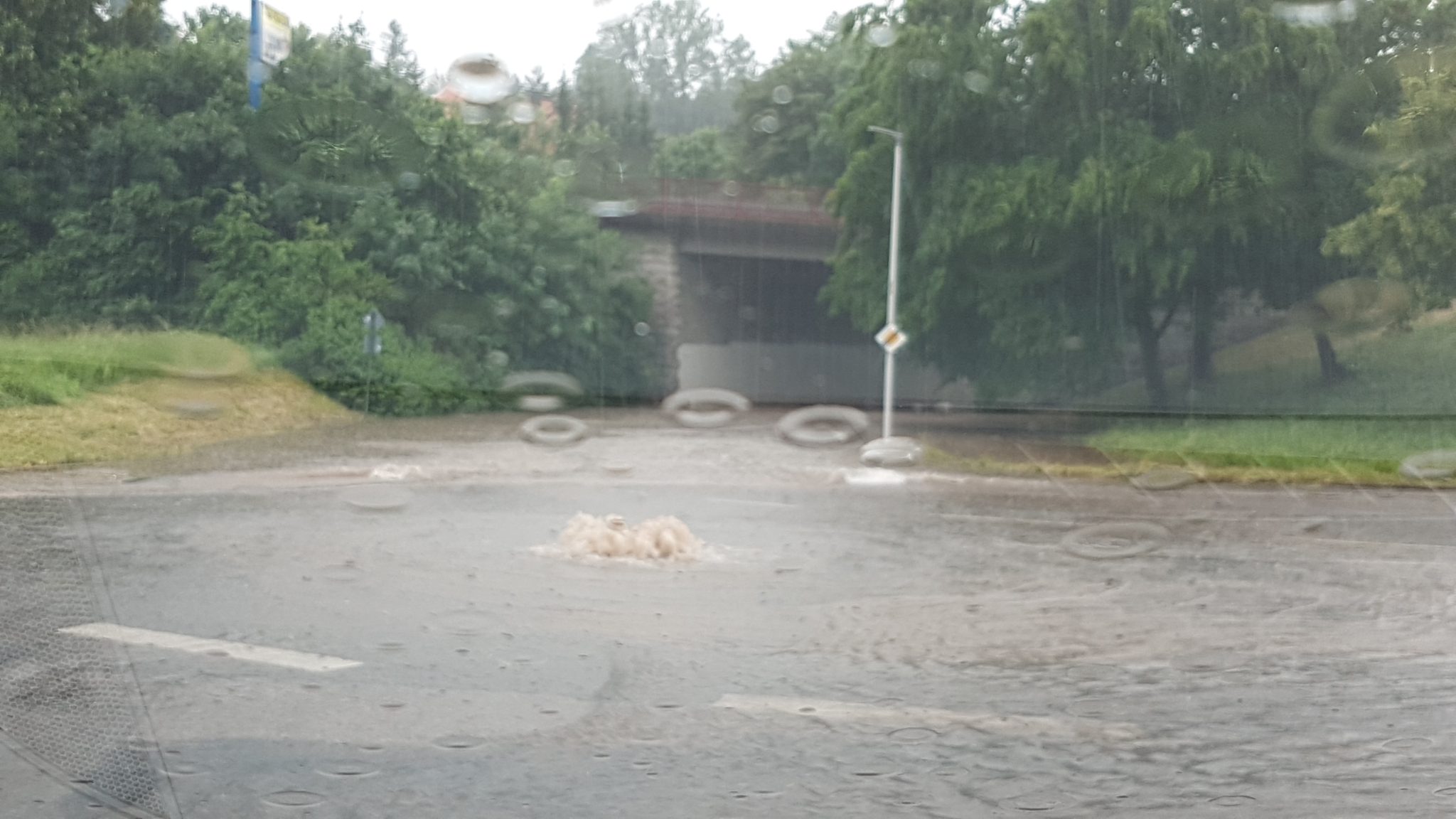 Im Bereich Maximilianstraße/Endresstraße und Triesdorfer Berg wurden viele Kanaldeckel durch zurück stauendes Wasser hochgespült und stellten somit eine Gefahr für den Straßenverkehr und Fußgänger dar.