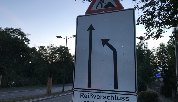Bei der Anwendung des Reißverschlussverfahrens bei der Fahrbahnverengung auf eine Fahrspur kam es zum Zusammenstoß der beiden Fahrzeuge, wobei beide Unfallbeteiligte widersprüchliche Angaben zum Unfallhergang machten.