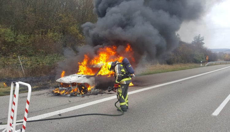 Ein 37-jähriger aus dem Raum Freyung-Grafenau befand sich auf der Rückfahrt vom Europapark Rust. Er hatte bereits etliche Km zurückgelegt, als er kurz vor der Rastanlage „Frankenhöhe“ einen Leistungsverlust des Pkw feststellte. Er schaltete zurück und bemerkte gleichzeitig, dass es hinter ihm rauchte. Kurz darauf bemerkte er, dass sich die Motorhaube wölbte und es aus dem Motorraum brannte. Deshalb hielt er an der Nothaltebucht und stieg mit samt seiner Begleiterin und den 2 Hunden aus. Der Pkw stand innerhalb weniger Minuten in Vollbrand. Die freiwilligen Feuerwehren Wörnitz und Schnelldorf waren zu Löscharbeiten eingesetzt. Der völlig ausgebrannte Pkw wurde abgeschleppt.