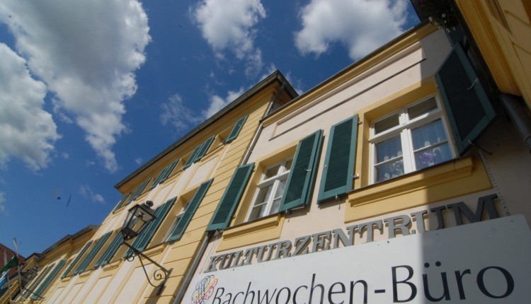 Die Geschäftsstelle der Bachwoche Ansbach zieht vorübergehend wieder in das Kulturzentrum am Karlsplatz um. Daher bleibt das Büro am Dienstag, 19. Juli, geschlossen. Die Öffnungszeiten am Karlsplatz sind dann bis Freitag, 21. Juli von 9 bis 12 Uhr, ab Montag, 24. Juli zusätzlich von 13 bis 16 Uhr. Mit Beginn der Bachwoche am Freitag, 28. Juli ist täglich von 9 bis 17 Uhr geöffnet, auch an den Wochenenden. Die Bachwoche endet am 6. August.
