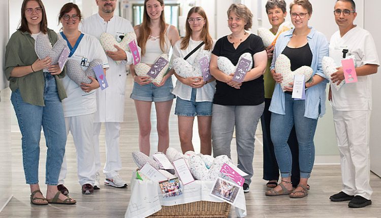 Die Kissen wurden im Rahmen eines Schulprojekts angefertigt. „Wir freuen uns sehr über diese wertvolle und großzügige Spende“, betonten Chefarzt Dr. Martin C. Koch und Leitender Oberarzt Carlos Andres Tapia Figueroa von der Klinik für Gynäkologie und Geburtshilfe bei der Spendenübergabe.