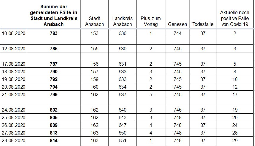 Corona aktuell im Kreis Ansbach – 28.08.2020