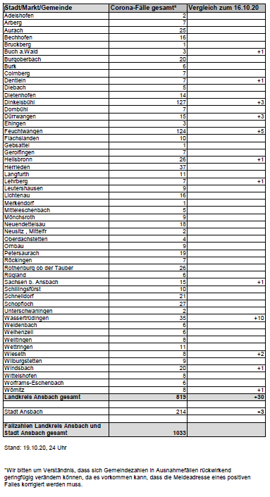 Corona aktuell in Stadt und Landkreis Ansbach – 20.10.2020