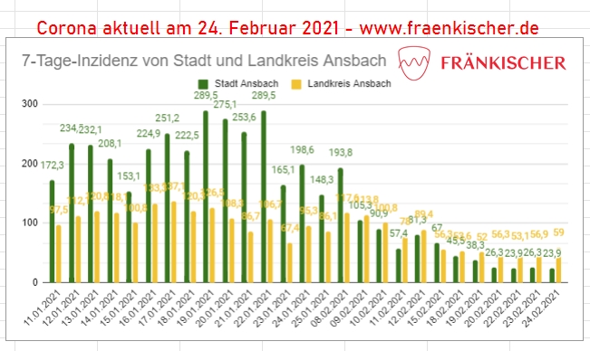 In der Stadt Ansbach liegt er bei 23,9. (laut RKI Stand vom 24.02.2021, 00:00 Uhr)