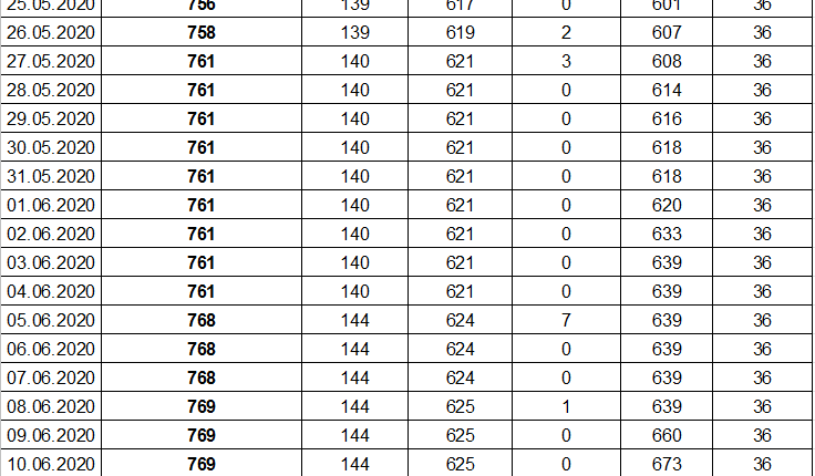 Kreis Ansbach, 15.06.2020 – Es gibt bislang keinen weiteren Infektionsfall und damit insgesamt 769 bestätigte Corona-Fälle in Landkreis Ansbach und Stadt Ansbach.