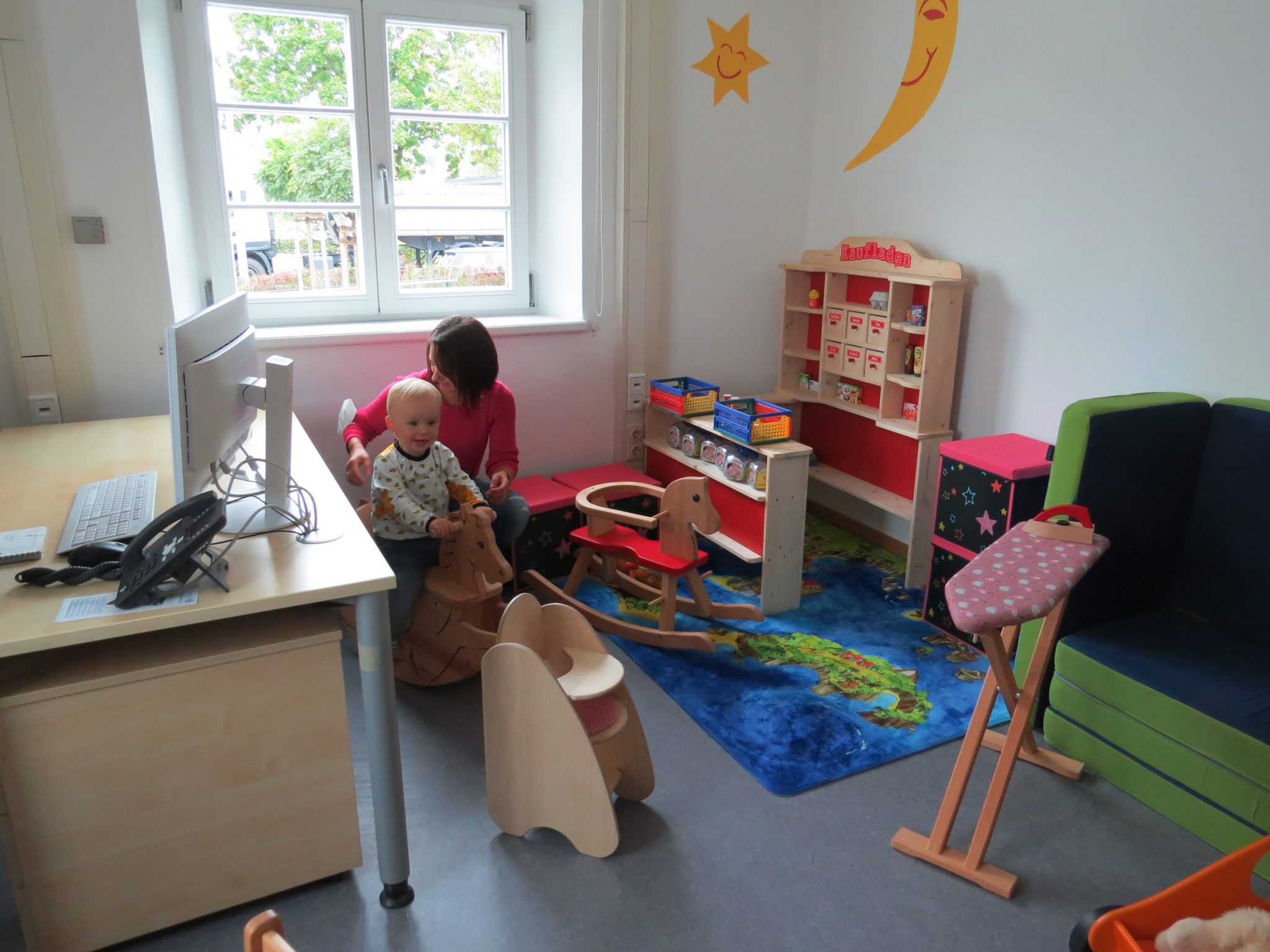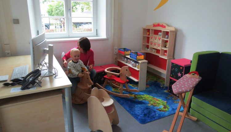 Der kleine Paul freut sich, dass er mit seiner Mama gemeinsam zur Arbeit gehen kann und das neue Eltern-Kind-Zimmer nutzen darf: