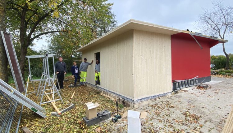 In Zusammenarbeit vom städtischen Bauhof, der Zimmerei Karl aus Hellenbach, der Spenglerei Düsterer und der Firma Kunzl und May aus Dinkelsbühl wird das Toilettenhäuschen an der Schwedenwiese erweitert.