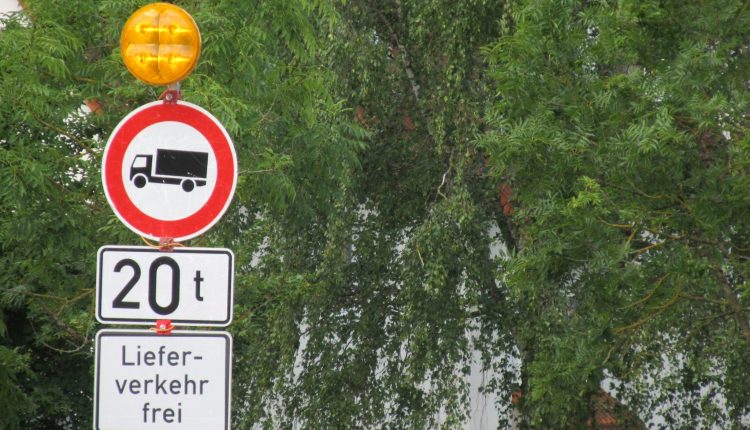 Das Verkehrszeichen 253 „Verbot für Kraftfahrzeuge über 3,5 t“ (In der Mitte steht das Sinnbild eines Lastkraftwagens in Schwarz auf weißem Grund mit rotem Rand) sowie das Zusatzzeichen „20 Tonnen“ bedeutet jedoch, dass Fahrzeugen und Fahrzeugkombinationen mit einer „Zulässigen Gesamtmasse“ von mehr als 20 Tonnen hier keine Durchfahrt gewährt wird.