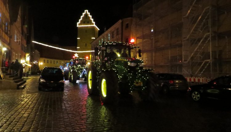 Landwirte aus dem Raum Dinkelsbühl wollten am Donnerstag, 23.12.2021 mit einem Lichterumzug einen Funken Hoffnung geben und ein Lächeln den Menschen bringen.