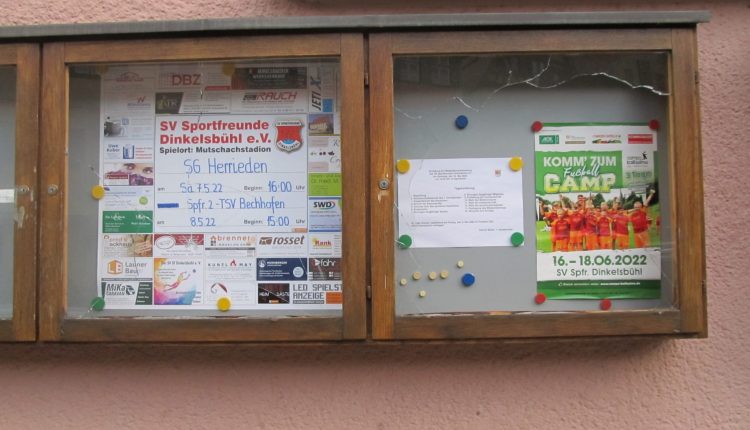 Unbekannte Täter beschädigten die am Altrathausplatz aufgehängten Schaukästen des SV Sportfreunde Dinkelsbühl, indem sie die Glasscheiben einschlugen. Die Tatzeit kann durch Zeugenaussagen auf die Zeit am Samstag, 30. April 2022 – 18 bis 23 Uhr, eingegrenzt werden.