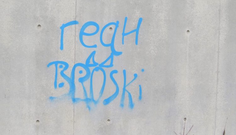 Durch unbekannte Täter wurde im Zeitraum vom 23. Dezember bis einschließlich den 25. Dezember 2023, die Außenfassade eines Schulgebäudes, in der Wörter Straße beschädigt. Der oder die Täter brachten rechts neben dem Haupteingang ein ca. 1 Quadratmeter großes Graffiti mit dem Schriftzug „REGH BROSKI“, in der Farbe Blau an.
