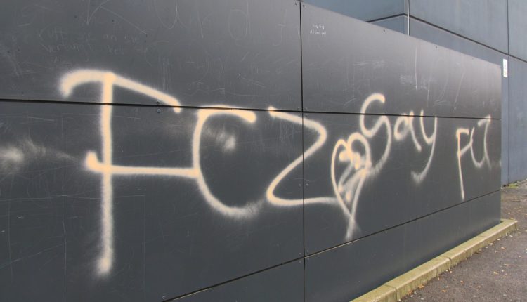 Im Zeitraum Freitag, 25.11. bis Montag, 28.11.2022 wurden ein Plattenzaun am Bahnhof Dinkelsbühl, sowie die rückwärtige Fassade eines nahegelegenen Verbrauchermarktes mit Graffiti versehen. Durch die Schmierereien entstand ein Schaden von etwa 800 Euro.