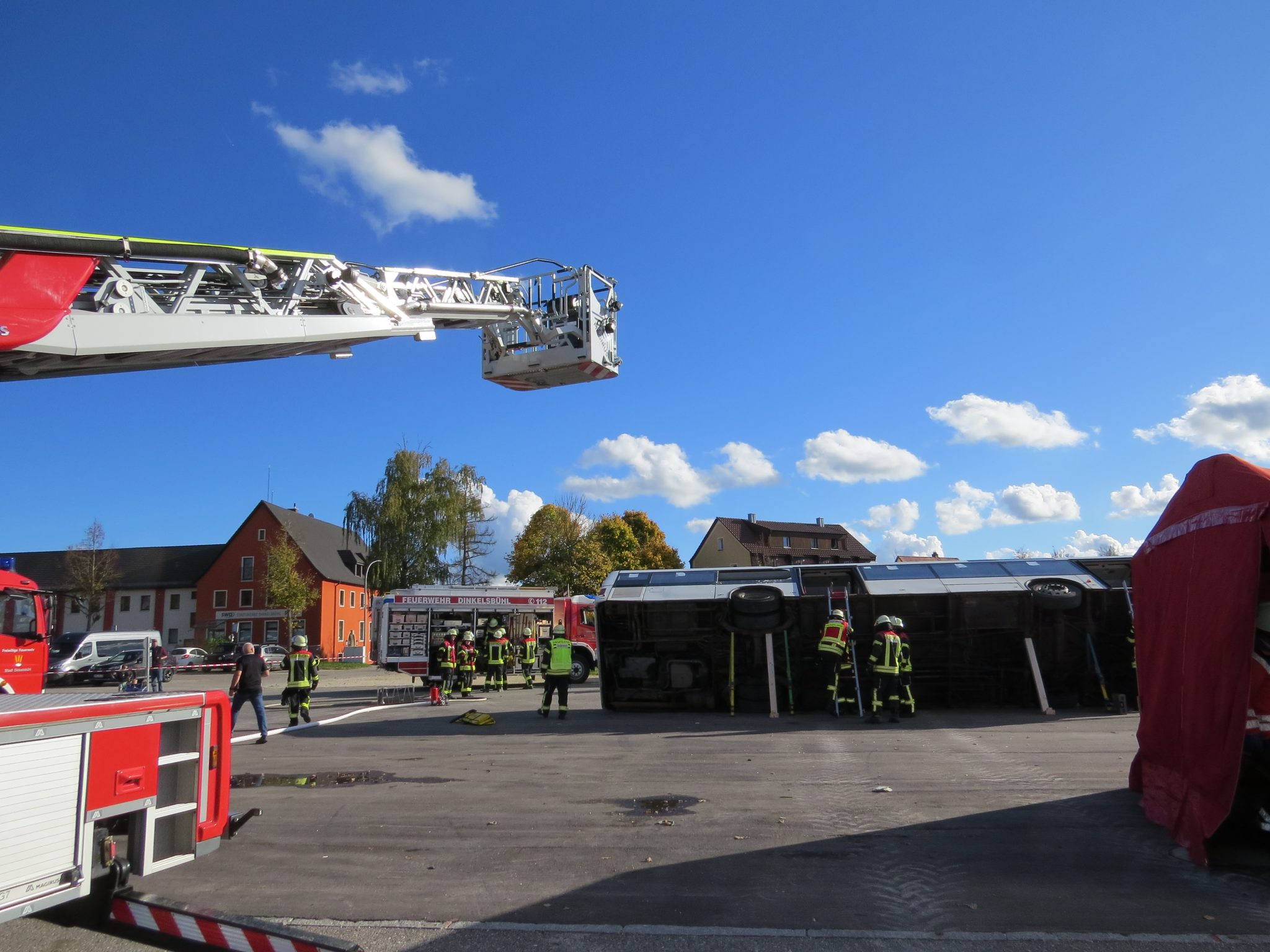 Dinkelsbühl: +++ „Schulbus kippt auf Pkw“ +++