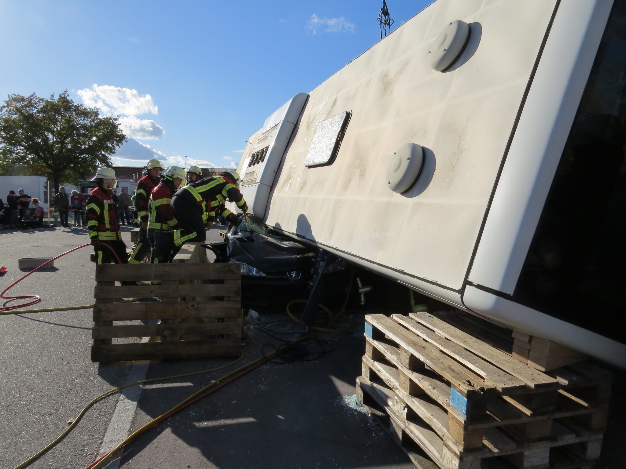 Dinkelsbühl: +++ „Schulbus kippt auf Pkw“ +++