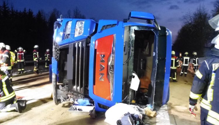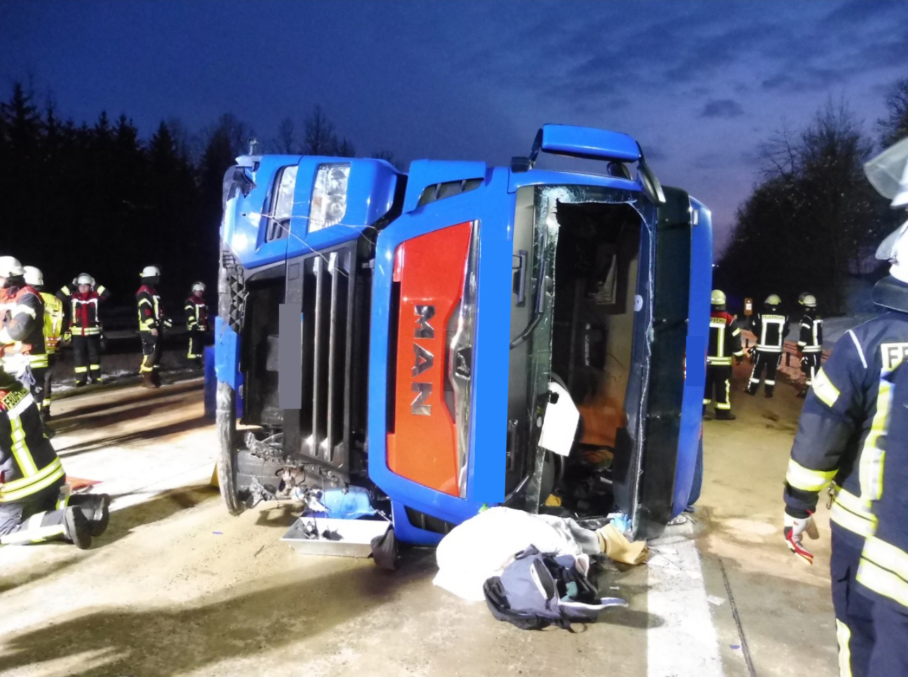 Ein 37-Jähriger aus Nordrhein-Westfalen überholte mit seinem Sattelzug einen Lastkraftzug und scherte dann wieder nach rechts ein. Plötzlich und unvermittelt kam der Fahrer dann aber wieder nach links, geriet auf das unbefestigte Bankett und durchbrach mit seinem Gespann die Mittelschutzplanke. Glücklicherweise herrschte dort zum Unfallzeitpunkt kein Verkehr, so dass keine weiteren Verkehrsteilnehmer gefährdet oder gar geschädigt worden sind. Der mit rund vierundzwanzig Tonnen Bandstahl beladene Sattelzug kippte dort schlussendlich auf die linke Seite und blieb so liegen, dass er die komplette Hauptfahrbahn und den Pannenstreifen in Fahrtrichtung Würzburg blockierte. Der Trucker war zunächst bewusstlos im Führerhaus eingeklemmt.