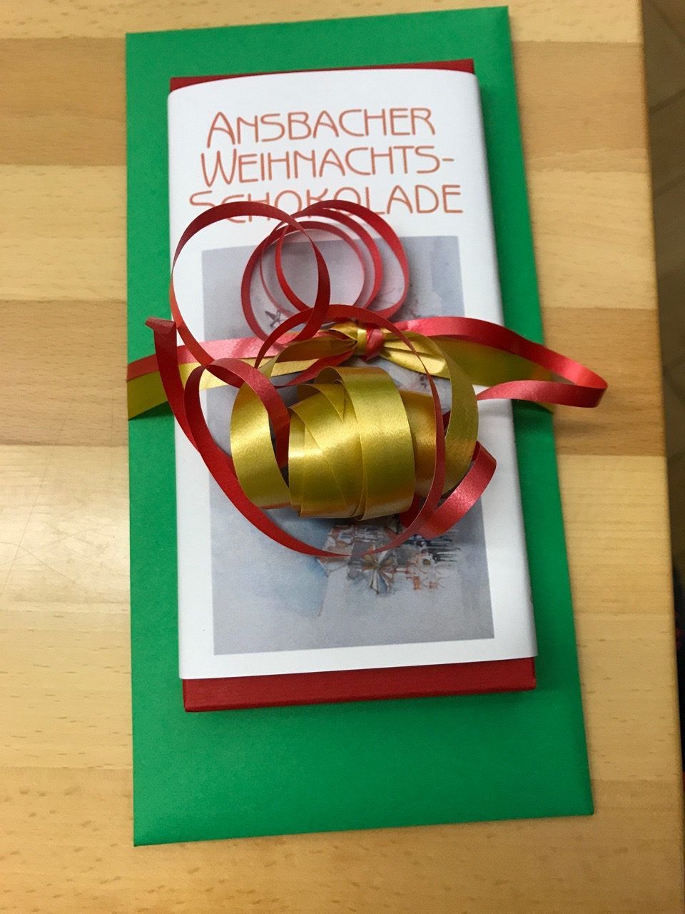 Als Preise gab es City Schexs im Wert von jeweils 20 € und eine Tafel der Ansbacher Weihnachtsschokolade. Lea Rudi darf sich darüber hinaus noch über ein paar blanko Exemplare der Karte mit ihrem Motiv freuen.