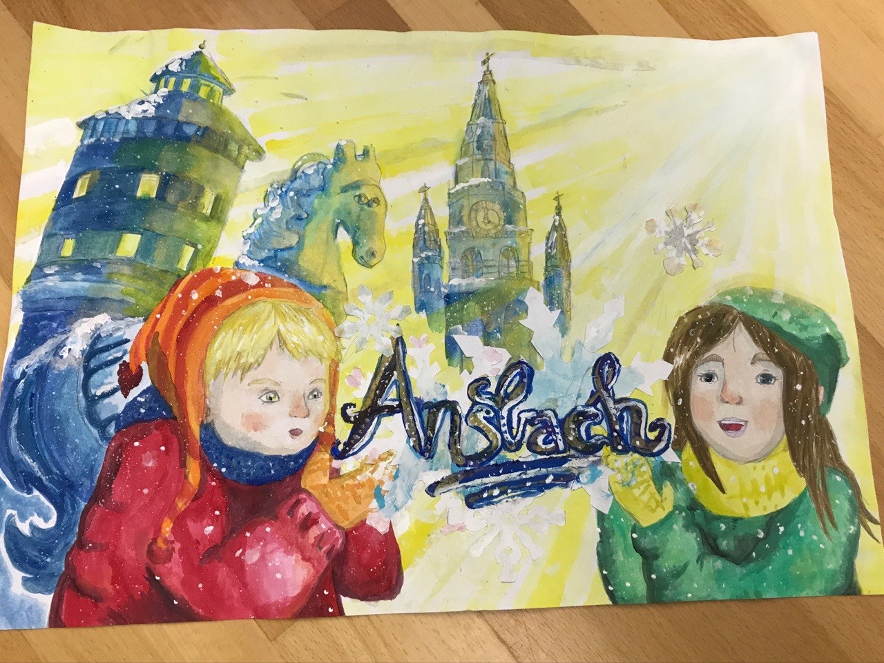 Drei mal mal: Lea, Laura und Chiara auf Platz 1 beim Malwettbewerb für die Weihnachtskarte der Stadt Ansbach