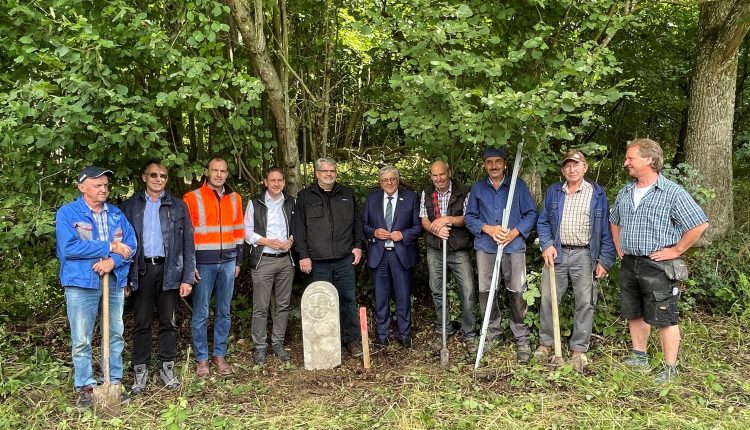 Ansbach, 7. August 2023 – „Früher sicherte dieser Grenzstein die Grenzen, heute verbindet er zwei befreundete Landkreise“, sagte Landrat Dr. Jürgen Ludwig anlässlich einer Grenzsteinsetzung nahe der A 7 bei Ohrenbach.