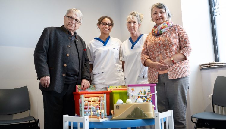 Ansbach, 10. April 2024 – Eine Zuwendung in Höhe von knapp 350 Euro hat das Interdisziplinäre Diagnostik-Zentrum (IDZ) am Klinikum Ansbach erhalten. Die Spende wurde von Monika Ries aus Obereichenbach (rechts) über die „Freunde und Förderer des Klinikums Ansbach“ zweckgebunden zur Anschaffung einer Spielecke im Wartebereich zur Verfügung gestellt.