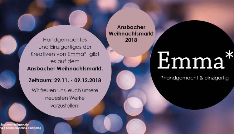 Emma* handgemacht & einzigartig – das ist nicht nur ein wunderschöner Name, sondern seit Februar 2016 auch der Name eines Vereins aus Ansbach. Mitglieder sind Handwerkerinnen und kreative Köpfe aus und um Ansbach, die sich der Liebe zu Handarbeit, Upcycling sowie regionalen Produkten und deren Herstellung verschworen haben. Emma* ist eine Plattform für Kreative aus dem Ansbacher Landkreis.