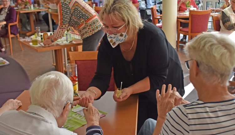 Es riecht nach Zitrusfrüchten im Diakoneo Wohnpark Neuendettelsau. Zitrusduft, so erklärt Manuela Füller zu Beginn ihres Vortrags, werde eine luftreinigende Wirkung nachgesagt. „Ein Anti-Corona-Duft also“, sagt sie augenzwinkernd. Christiane Schuh hat die geschäftsführende Leitung des Bereichs Dienste für Senioren von Diakoneo als Referentin ins Café der Begegnung eingeladen, um die Besucherinnen und Besucher in die Welt der Aromapflege einzuführen. Es sind vor allem Seniorinnen und Senioren, die zum Vortrag ins Café der Begegnung gekommen sind. Neben Kaffee und Kuchen und Gesprächen mit den Tischnachbarn, erhoffen sich einige Gäste ein entspannteres Einschlafen mit dem richtigen Aroma, verrät Christiane Schuh bei der Begrüßung.