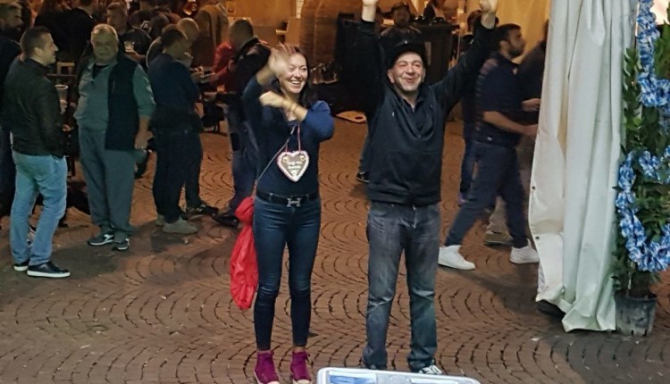 Mit dem traditionellen Bieranstich eröffnete Bürgermeister Paolo Calcinaro am Donnertag, souverän mit zwei Schlägen das besondere „Volksfest“. Der erste Abende lockte, für einen Wochentag ungewöhnlich, sehr viele Fermani auf die Piazza del Popolo. Regen und Kälte sorgten dann leider am Freitag für anfangs weniger Zustrom, aber nicht für weniger Stimmung im Festzelt, welches sich zu späterer Stunde noch füllte.