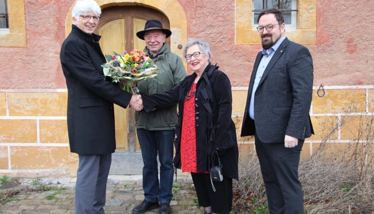 Das Fränkische Freilandmuseum des Bezirks Mittelfranken in Bad Windsheim ist in die neue Saison gestartet. Die ersten Besucher Monika und Werner Roth aus Hemhofen (Landkreis Erlangen-Höchstadt) wurden von Museumsleiter Dr. Herbert May und dem Stellvertretenden Verwaltungsleiter Reinhold Werner mit einem Blumenstrauß begrüßt.