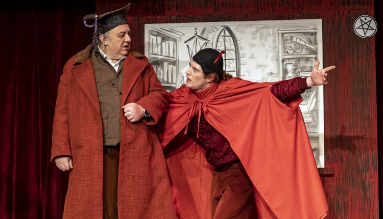„Faust“ ist von Goethe, das weiß jeder, ein Stück mit 57 Rollen. Doch in Zeiten der Sparmaßnahmen muss man auch mit drei auskommen. Als auch diese Besetzung nicht zu halten ist, bringen André und Heiner (Mario Brutschin) das große Stück zu zweit auf die Bühne. Doch der Teufel steckt nicht nur im Pudel, sondern auch im Detail, und manche Hürde muss live mit Fantasie und Tempo gemeistert werden. Die beiden Koryphäen schlittern dabei von einem Höhepunkt zum Nächsten, bringen jedoch in knapp 90 Minuten das Dreistundenwerk zur Aufführung.