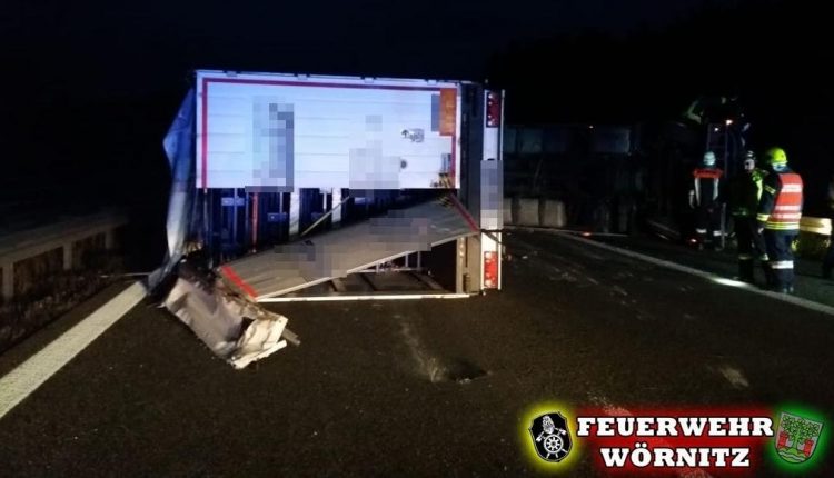 Der 34-jährige Trucker konnte aus seinem Führerhaus geborgen werden und kam schwer verletzt mit dem Rettungsdienst in ein nahegelegenes Krankenhaus. Zur Bergung des umgestürzten Lkw-Gespannes wurde ein Lkw- Abschleppunternehmen alarmiert. Gegen Mitternacht konnte die linke Fahrspur für den Verkehr wieder freigegeben werden. Der Verkehr konnte einspurig an der Unfallstelle vorbeirollen. Gegen 02:30 Uhr war die Bergung abgeschlossen und die Fahrbahn in Fahrtrichtung Nürnberg wieder befahrbar. Es entstand ein Gesamtschaden in Höhe von ca. 150.000 Euro.