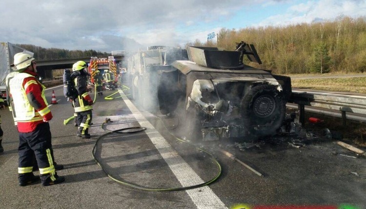 Zum ersten Autobahneinsatz des Jahres 2018 wurden wir auf die A6 alarmiert. Dort war ein Hummer der US Army, der gerade in einem Militärkonvoi abgeschleppt wurde, zwischen den Achsen in Brand geraten. Mehrere Verkehrsteilnehmer meldeten diesen Brand umgehend und sehr detailliert der Leitstelle, die uns gemeinsam mit der Wehr aus Feuchtwangen zur Löschung des Brands ans Autobahnkreuz beorderte. Als wir an der Einsatzstelle eintrafen stand das Gefährt bereits im Vollbrand. Das äußerst stabil gebaute Fahrzeug konnte schnell abgelöscht werden. Während des Einsatzes leiteten wir den Verkehr einspurig an der Unglücksstelle vorbei, sodass lediglich ein kurzer Rückstau entstand.