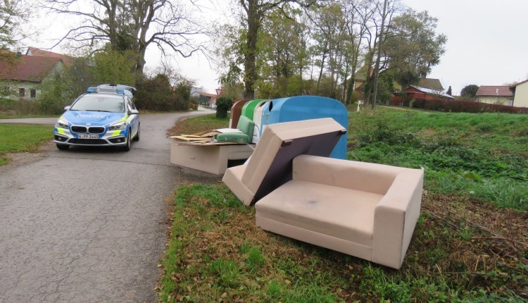 In der Nacht von Freitag auf Samstag, zwischen 21.00 Uhr und 07.00 Uhr wurde an den Wertstoffcontainern in Vorderbreitenthann illegal Müll abgelagert. Ein Sofa, mehrere große Kissen, Pressspanplatten und weiterer Hausmüll wurden von Unbekannten so auf Kosten der Allgemeinheit entsorgt. Der Bauhof darf sich jetzt um die Beseitigung kümmern. Die Polizeiinspektion Feuchtwangen bittet um sachdienliche Hinweise unter Tel.: 09852/67150.
