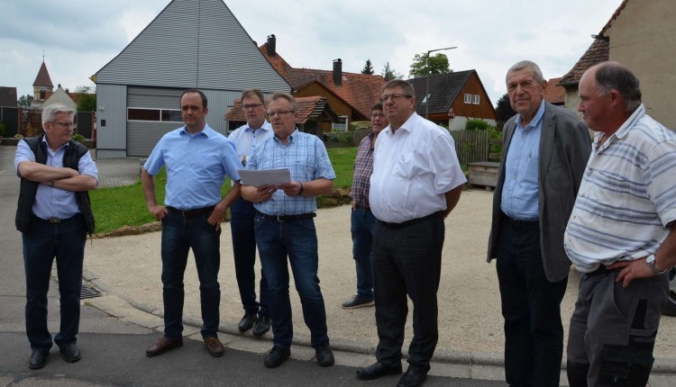 Bürgermeister Werner Leibrich und einige Gemeinderäte nutzten den Besuch des Abgeordneten, um einige der Maßnahmen, die im Rahmen der Dorferneuerung geplant sind, vorzustellen. Leerstehende Gebäude im Ortskern werden dabei abgerissen und die Fläche einer neuen Nutzung zugeführt. Dazu hatte Westphal gute Nachrichten für die Kommune dabei: „Das Staatsministerium für Ernährung, Landwirtschaft und Forsten hat eine neue Initiative zur Förderung des ländlichen Raumes gestartet. Wir wollen die Menschen und Familien in den Dörfern halten oder dorthin zurückholen. Dazu brauchen wir lebendige Ortskerne und eine positive Innenentwicklung bei unseren Dörfern. Damit begegnen wir zugleich dem Flächenverbrauch, indem wir auf Freiwilligkeit statt auf zusätzliche Paragraphen setzen. Nach dem Motto ‚Innen statt außen‘ ist es daher sinnvoll, das Instrument der Dorferneuerung zu stärken. Künftig erhalten daher Kommunen bis zu 80 Prozent Förderung, wenn sie leerstehende Gebäude modernisieren, instand setzen oder abbrechen, um die Grundstücke für eine Wiederbebauung bereitzustellen. Für finanzschwache und vom Bevölkerungsrückgang besonders stark betroffene Gemeinden sind sogar bis zu 90 Prozent Förderung möglich.“
