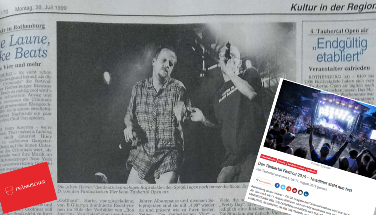 Und so kommen wirklich große und auch bekannte Bands in die beschauliche, ehemalige Reichsstadt, die oberhalb der Tauber und somit als grandiose Kulisse für das Festival dient. So auch die Band „Die Fantastischen Vier“, welche schon im Jahr 1999 einer der Headliner vom Open Air waren. Und das mit folgender Bildunterschrift …