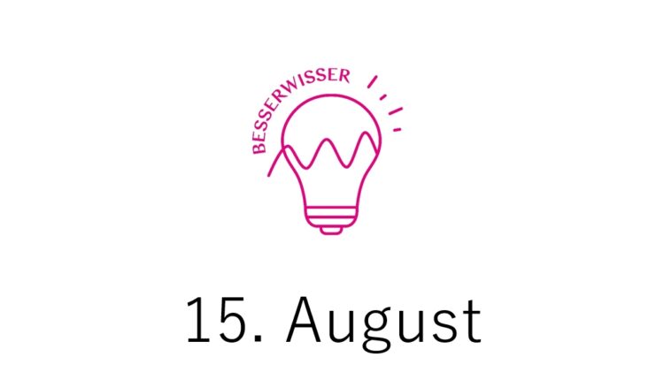 Der 15. August ist der 227. Tag des gregorianischen Kalenders (der 228. in Schaltjahren), somit bleiben 138 Tage bis zum Jahresende. Heute ist Mariä Himmelfahrt (Feiertag in den katholischen Gegenden). Namenstag hat Sven.