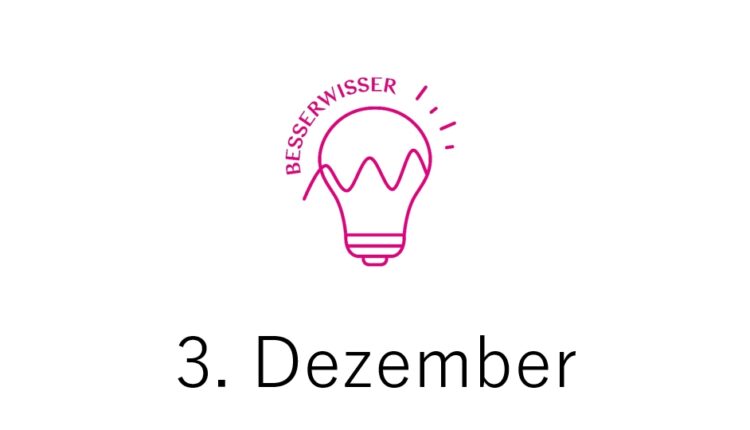 Der 3. Dezember ist der 337. Tag des gregorianischen Kalenders (der 338. in Schaltjahren), somit bleiben 28 Tage bis zum Jahresende. Heute ist Internationaler Tag der Menschen mit Behinderung.