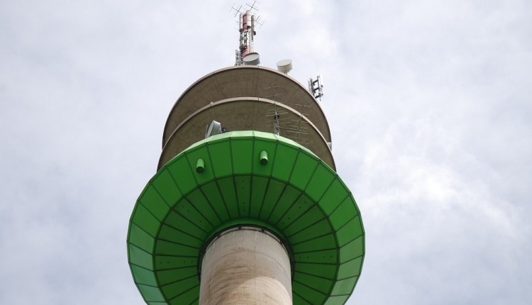 - Höhen der Betriebsräume: 79,3 m, 85 m, 92,5 m, 100 m = Plattformen für Mobilfunk und Richtfunkantennen