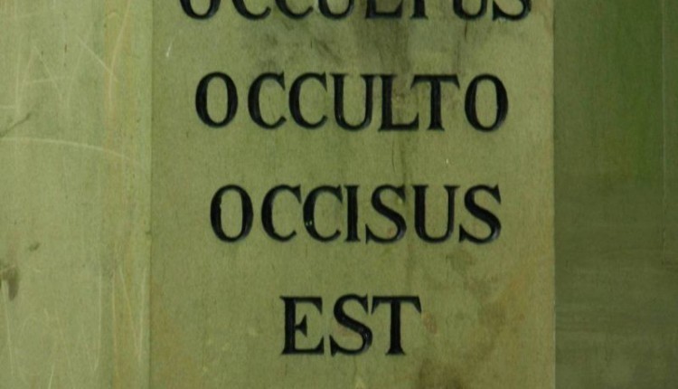 „HIC OCCULTUS OCCULTO OCCISUS EST XIV. DEC. MDCCCXXXIII“ – „Hier kam ein Unbekannter auf unbekannte Weise ums Leben. 14. Dez. 1833.“
